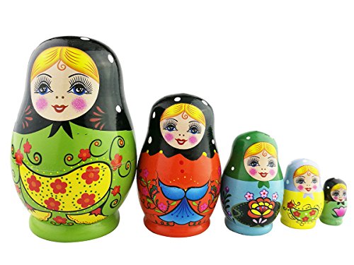 -. Title : Set of 5 Nesting Dolls Matryoshka Russian Doll Popular Handmade Kids Girl Gifts Christmas Toy-Green Flower Egg Type