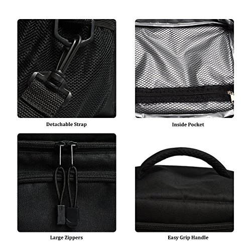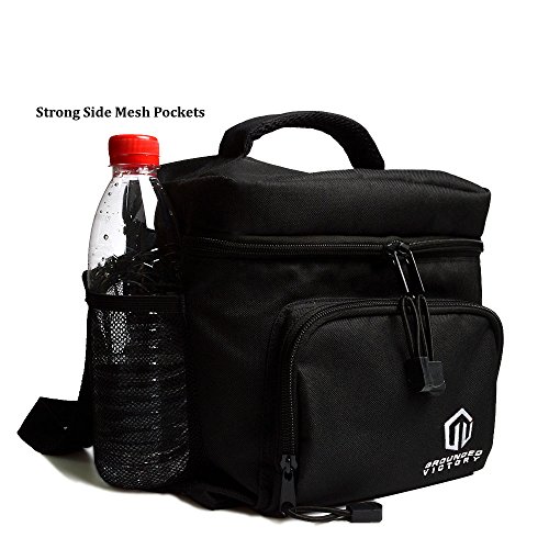DIMENSIONS: 10L x 7.5W x 9H (inches) Big enough to hold your lunch and small enough for you to carry easily. This collapsible cooler tote can fold when not in use. Has a double zip closure and is easy to carry with a comfort-grip handle and adjustable removable shoulder strap. Unisex design that can be used as a lunch bag for women or lunch bag for men. It’s versatile enough to be used as a lean cuisine lunch bag, to carry tupperware for home cooked meals, or to hold up to 9 soda cans!