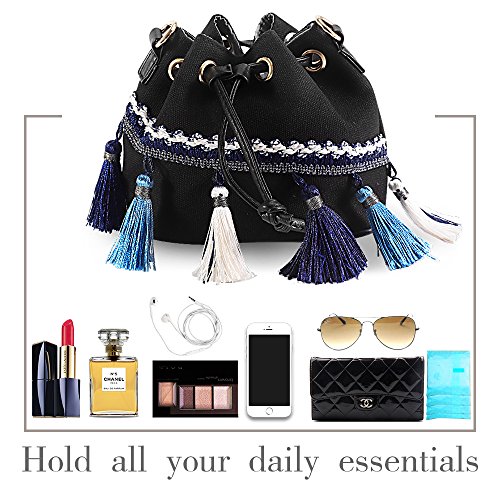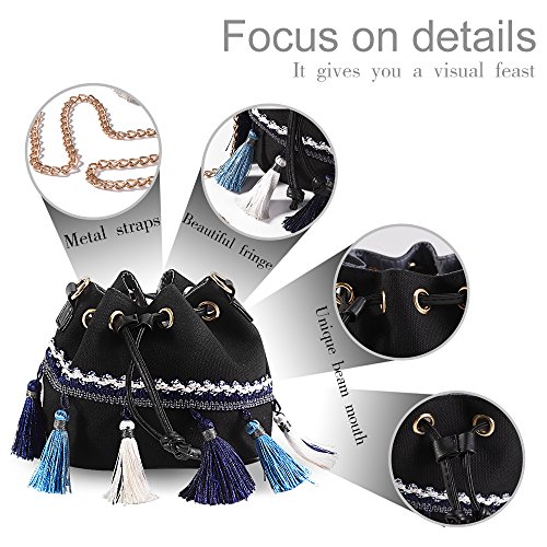 -. Feature : Retro and National Wind: Crossbody bag because of the Features lace and tassel decoration design, thus becoming more fashionable and unique. You can match any casual, retro, refreshing clothing, making it one of the most fashionable and elegant bag for your daily use. / MULTI-FUCTIONAL: You can use it as Purse /Handbag / Shoulder bags / Messenger / cell phone bag/tote bag/Loose Change Pouch ect. This Bag Size: 6.3 inch(L) * 4.7inch(W) * 5.4 inch(H) ; Shoulder Strap length : 44 inch ; Weight : 150g. / Small body with large capacity. This Casual Handbags for you to carry smartphone, earphone, money, key,wallet,cigaret,adapter, power cords, charger,glasses, keys, pens, a planner and makeup, etc. / Elegant high-end design goes well with any outfit in any occasions like work, business, dating, Daily, travel, go shopping,travelling or going to school etc.No matter you are a housewife, office lady or a college student, this Crossbody bag is a great choice of you. / Our classical lady bag offers an unconditional 30 Day Money Back Guarantee,Ships Quickly From the US.