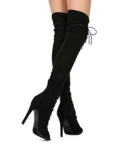 Alrisco Women Over The Knee Peep Toe Lace Up Stiletto Boot - HF39 By Top Show Collection