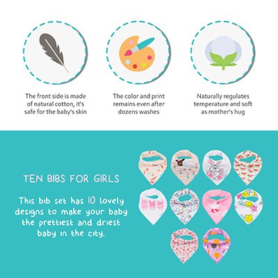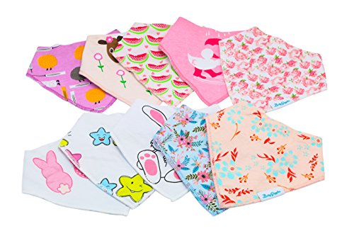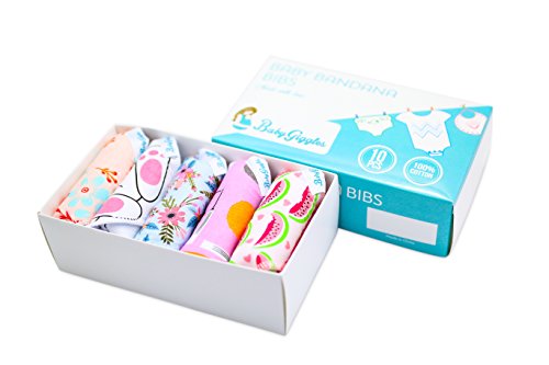 -. Binding : Apparel -. Brand : BabyGiggles -. Department : baby-girls -. Feature : SPEND LESS TIME WASHING CLOTHES & MORE QUALITY TIME WITH YOUR BABY! - Now you don't have to do laundry all the time! Our 10-pack of adorable baby girl bandana bibs will help keep your teething baby's clothes dry and clean thanks to their ultra-absorbent design! Less time washing clothes means more play time with your baby girl! / KEEP YOUR BABY'S SENSITIVE SKIN SAFE FROM RASHES & IRRITATIONS! - Unlike other cheaplymade baby products that may cause skin irritations, our adorable baby girl bandana bibs are made of 100% skin-safe and hypoallergenic natural cotton. The extra-soft and silky smooth texture will not only feel great against your newborn's skin, but also keep bacteria away thanks to its naturally antibacterial properties! / STYLISH & ADORABLE BIBS FOR YOUR LITTLE P.R.INCESS! - Now your little lady can have the cutest and most exciting baby bandana bibs available! The romantic colors (white, purple, pink) combined with the floral designs and adorable cartoonish bunny or starfish patterns will surely make your baby girl smile! Don't waste time! Grab your camera and snap a picture of your baby waring the BabyGiggles trendy bibs! / LOOKING FOR THE PERFECT BABY SHOWER GIFT IDEA? - Look no further! SurP.R.Ise every new mommy with the Baby Giggles premium baby bandana bibs and help make her life easier! The incredibly cute pattern combined with the luxurious cotton fabric will make sure that her baby girl looks and feels amazing! And since our set includes 10 baby bibs, new mommy will not have to do laundry every other day! / 100% LUXURIOUS COMFORT FOR YOUR LITTLE ANGEL OR YOUR MONEY BACK! - You can try the Baby Giggles plush and adorable drooling and teething baby bandana bibs for girls for 30 days absolutely risk-free! If by that time you and your baby aren't 100% thrilled with their performance, we promise to offer you a prompt and full refund. No questions asked! What are you waiting for? -. IsAdultProduct : 0 -. ProductGroup : Apparel -. ProductTypeName : ACCESSORY -. Size : Medium -. Title : BabyGiggles Bandana Bibs - 10 Pack Cute Design For Boys, Girls, Newborns, Infants & Toddlers – Soft & Hypoallergenic 100% Natural Cotton & Extra Absorbent For Teething Babies