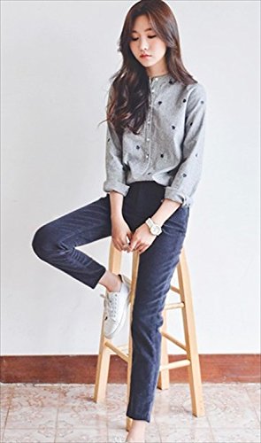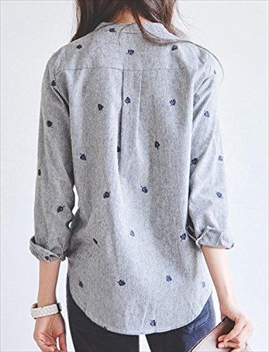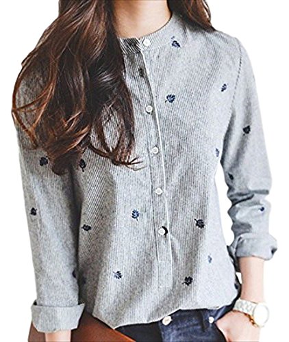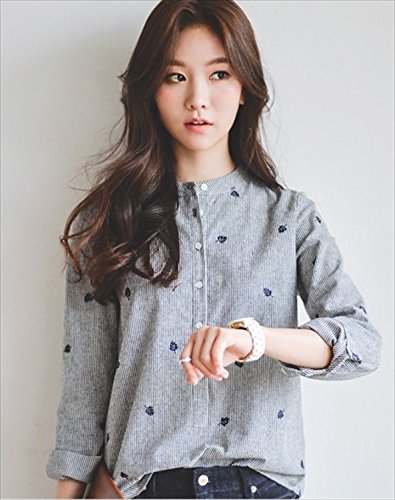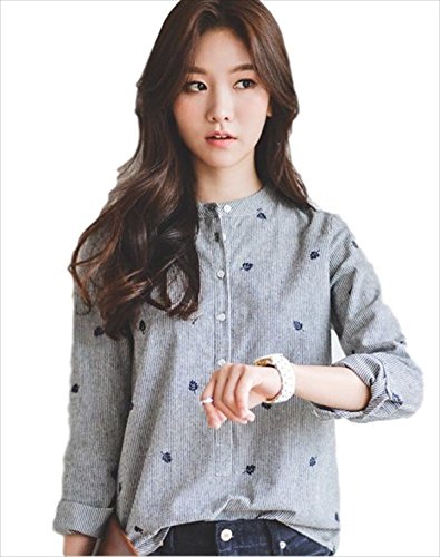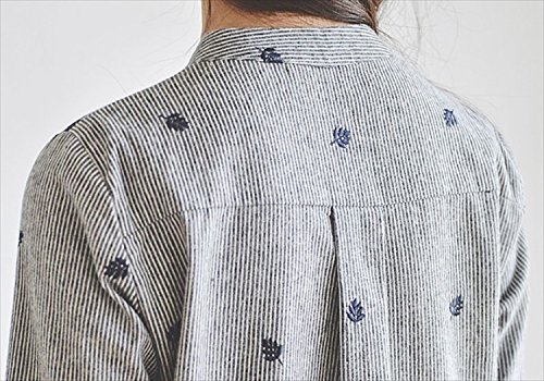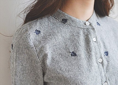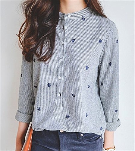 -. Title : (フムフム) fumu fumu ブラウス 長袖 シャツ レディース 刺繍 ファッション かわいい ビジネス 上品 ストライプ 柄 S M L XL