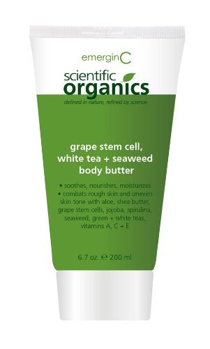emerginC Scientific Organics - Grape Stem Cell, White Tea + Seaweed Body Butter is a fresh-citrus-scented nourishing total body cream contains grape stem cells, spirulina, algae, green and white teas, shea butter, jojoba seed oil, vitamins A, C and E, palmariapalmata, pine bark extract and more to nourish, soothe and soften the skin.