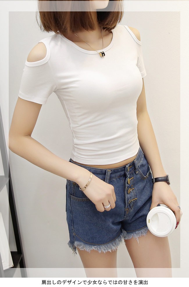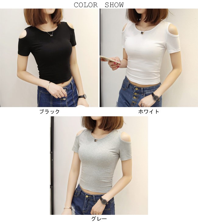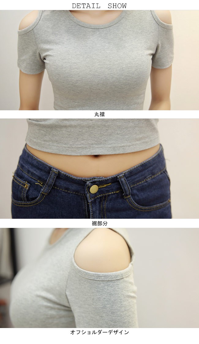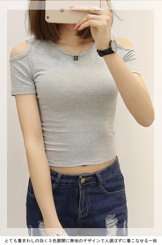 Tシャツ オフショルダー 半袖 レディース ヘソ出し スリム 女性用 トップス 夏物 半袖Tシャツ タイト セクシー 肩出し 丸襟レディース用の半袖Tシャツが登場吸湿性・通気性に優れた綿混紡素材を使い、ソフトで爽やかな肌触りをもたらす肩出しのデザインで少女ならではの甘さを演出スリムシルエットにへそ出しの丈感でセクシー度も満点とても着まわしの効く3色展開に無地のデザインで人選ばずに着こなせる一枚カラー:ブラック ホワイト グレー素材 綿混紡サイズ(cm) S M L XL 2XLS 着丈46 バスト72M 着丈47 バスト76L 着丈48 バスト80XL 着丈49 バスト842XL 着丈50 バスト88ご注意:※サイズは平置きサイズです。素人採寸ですので、若干の誤差がございます、ご了承ください。