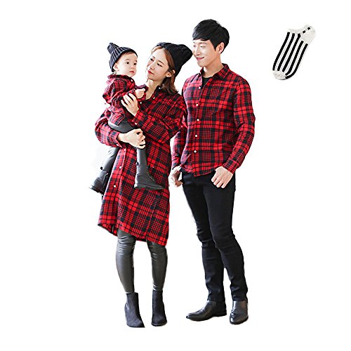 -. Title : AIKOSHA NETWORK レディース キッズ メンズ シャツワンピース & 靴下 のセット商品 長袖 ネルシャツ チェック柄 ペアルック お揃い 親子