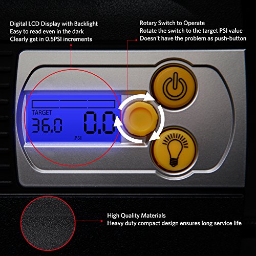 NIGHT USE AND SOS - Built-in digital air gauge features a bright LCD backlight display for night vision. Super bright 7 x LEDs on the side: four white ones for lighting and three flashing red ones for emergency SOS.