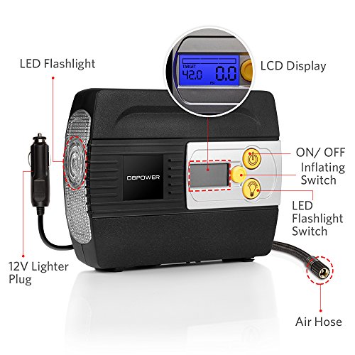 DBPOWER 12V DC Auto Premium Digital Tire Inflator, Pump to 100 PSI Portable Air Compressor with Digital Gauge and Light for Cars, Trucks, Bicycles and Basketballs