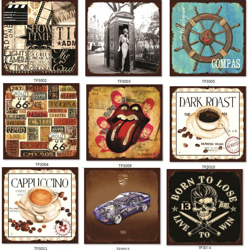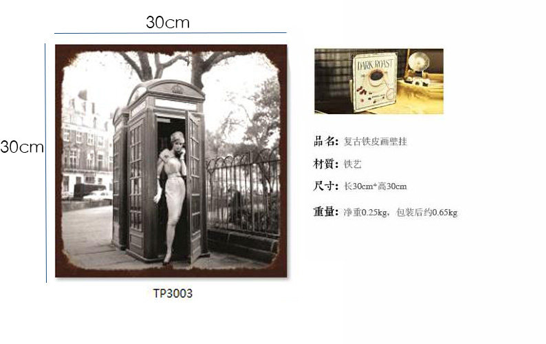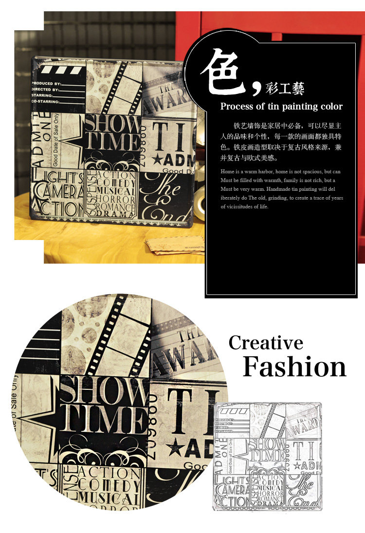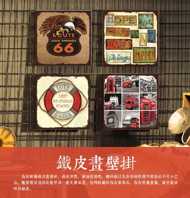 美式复古铁皮装饰画沙发墙铁皮画做旧咖啡厅墙面上酒吧墙壁装饰品