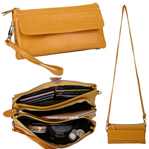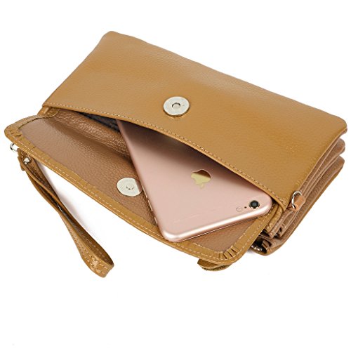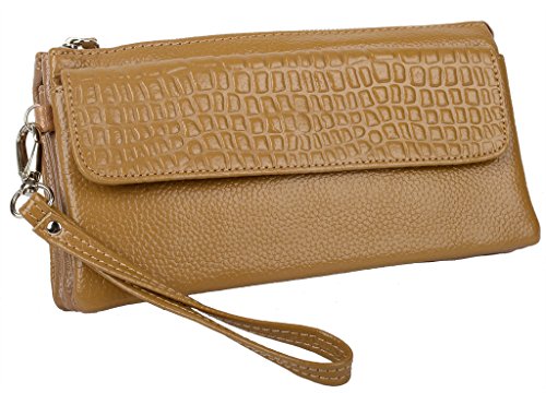 -. Title : YALUXE Women's Large Capacity Leather Smartphone Wristlet Clutch with Shoulder Strap