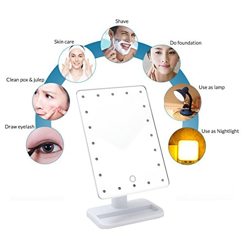 Make Up Mirror,Charminer Illuminated Cosmetic Desktop Vanity Mirror with 20 LED lights with Stand,Handy Touching On/Off White