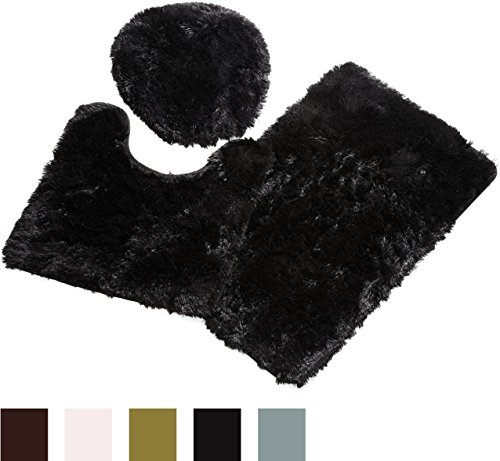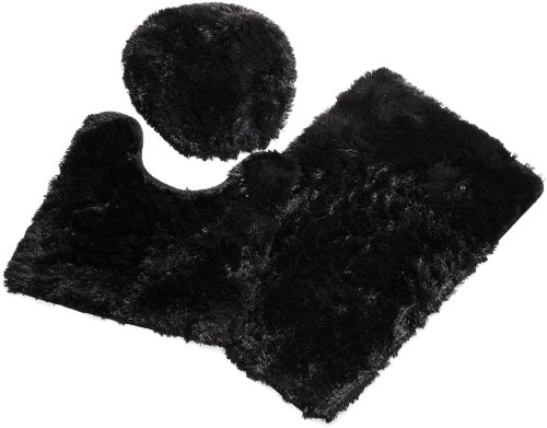 Popular Bath 3-Piece Fluff Rug Set, Black