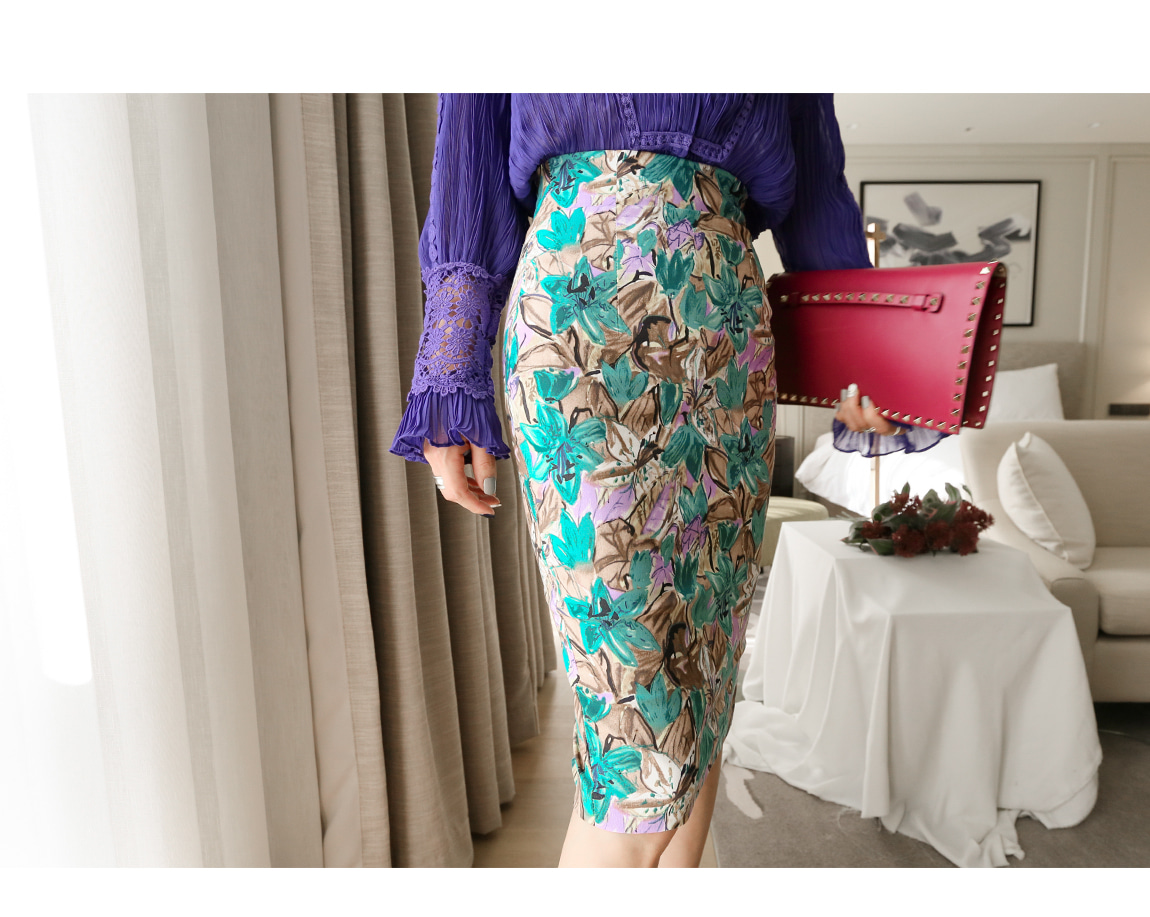 フローラルパターンが洗練された雰囲気のスカートです