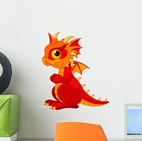 Red Baby Dragon Wall Decal by Wallmonkeys Peel and Stick Graphic (12 in H x 10 in W) WM318141