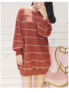 ニットワンピース ミニワンピース ニットトップス ニットプルオーバー ボーダー 秋冬 ラメ 丸首 ラウンドネック