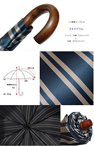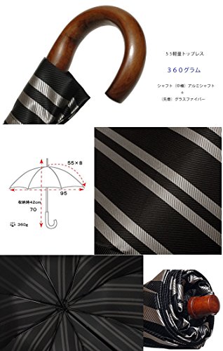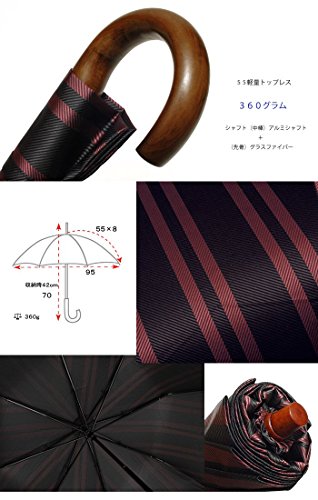 -. Feature : 商品名 55×8軽量トップレス甲州織(レジメンタル)ストライプ 楓手 / 手元 メープル / 生地 甲州織 ポリエステル100% / サイズ 親骨の長さ 55cm×8本、収納時の全長42cm、開いた直径 約95cm、重さ360g、 アルミシャフト&親骨、受け骨アルミ 先骨カーボンファイバー / 原産国 日本製