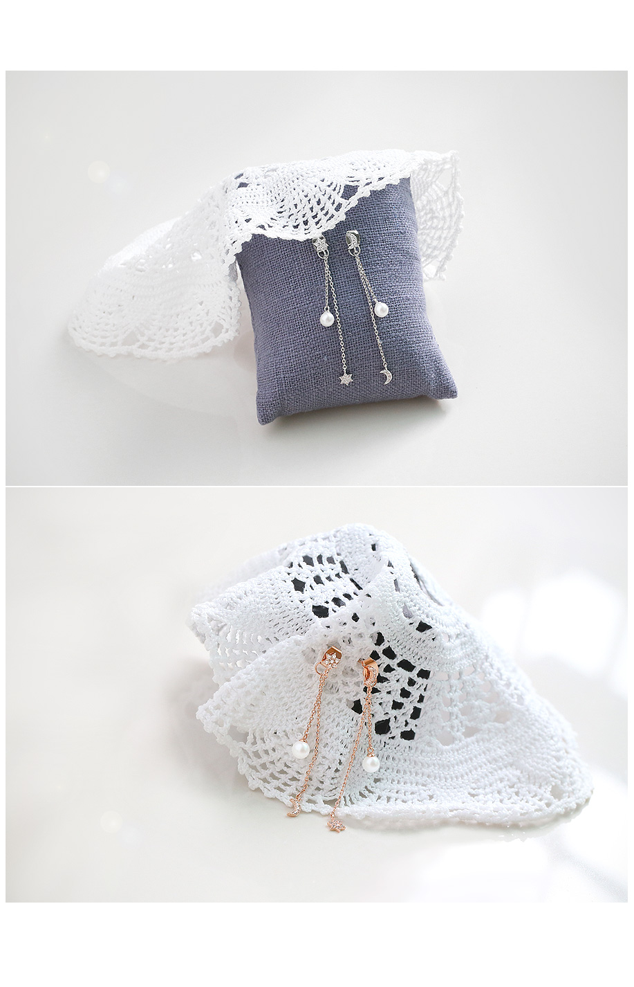 양쪽의 별,달 팬던트 위치가 다른 언발 스타일의