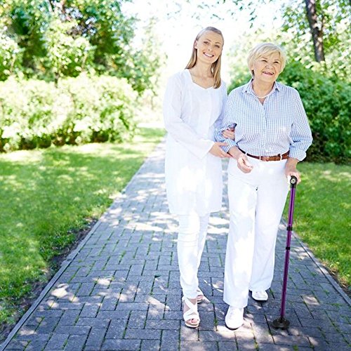 ✔️ UNIQUE MULTI-ANGLE LED TO LIGHT UP YOUR PATH: Our walking canes for women have 6 built-in high beam LED lights that adjust up to a 45-degree angle. See where you are going with extra stability so you don't trip and fall. Have to use the bathroom in the middle of the night? Worry no more! See where you are walking in the dark with enhanced safety features. The quad textured feet flexes like an ankle, moving with you and adapting to the environment.
