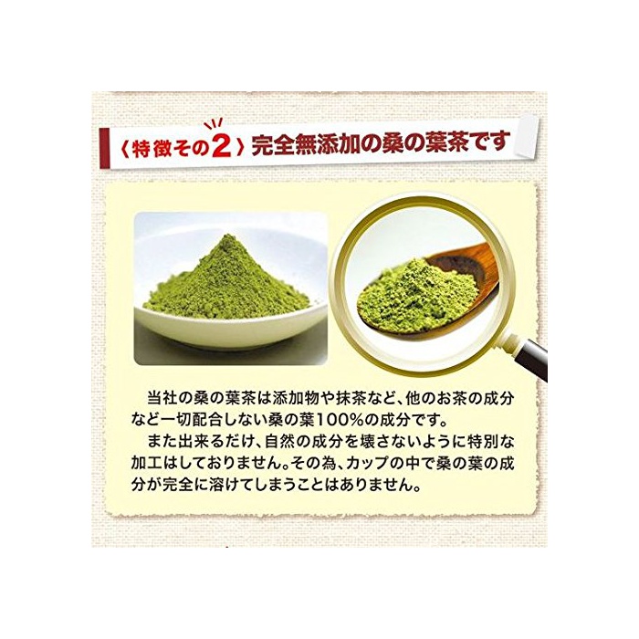 뽕나무의 햇엽차 분말 국산이기 때문에 안심 안전.100g들어감.컵(200cc)100잔분의상의 햇엽차가 마심 할 수 있습니다.