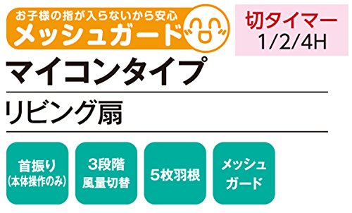 -. Feature : サイズ:幅36×奥行き34×高さ70~84cm / 本体重量:3kg / 電源:AC100V(50/60Hz) / 消費電力:(50Hz)40W、(60Hz)45W ※強風時 / 保証期間:1年 / 付属品:取扱説明書(保証書含む) / 電源コード長:1.6m 、 高さ調節:70~84cm 、 羽根(直径)サイズ:30cm(5枚羽根) / 風量調節:強・中・弱(3段階) 、 スイッチ:ソフトタッチ(マイコン式) 、 タイマー:1/2/4時間切タイマー / 首振り:○(本体操作のみ) 、 前ガード:メッシュガード