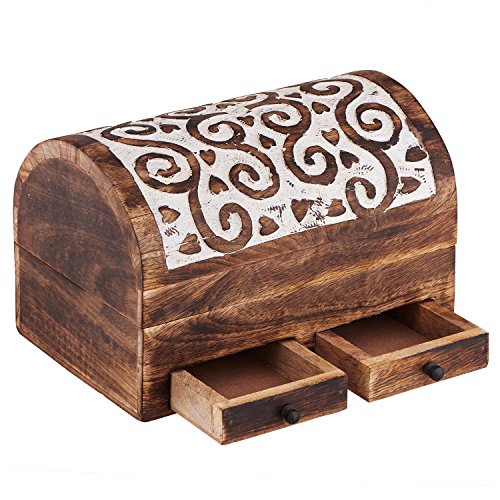 Valentine's Day Gift Decorative Wooden Jewelry Box Trinket Organizer Keepsake Storage Box Multipurpose Accessories 9 x 6 Inches - Mango Wood. (2)