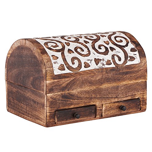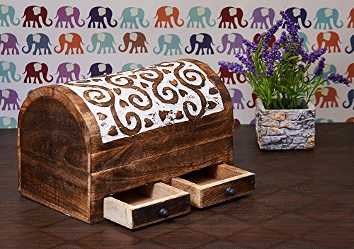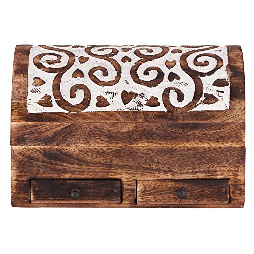 Crafted from the finest Mango wood, this jewelry box comes with floral carvings on top.