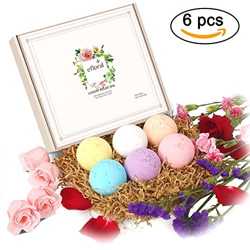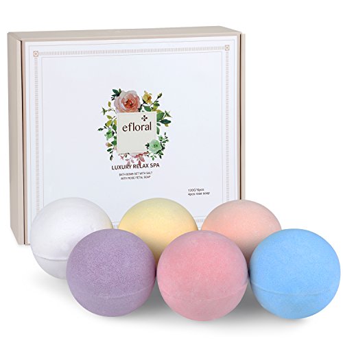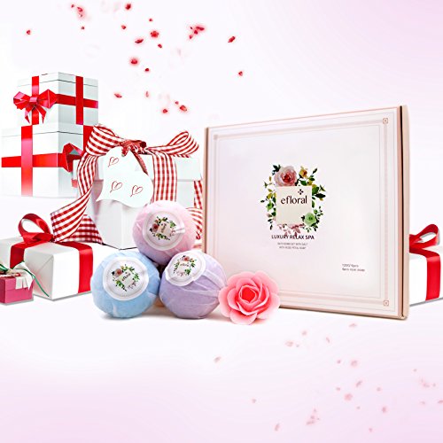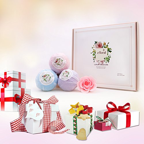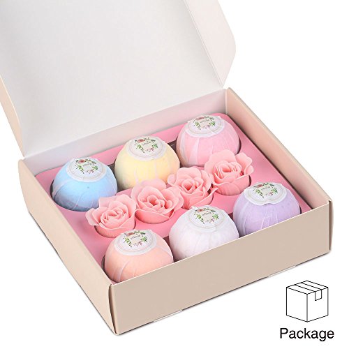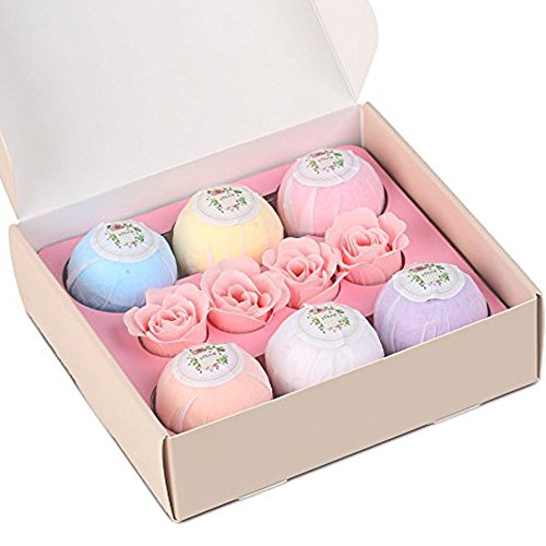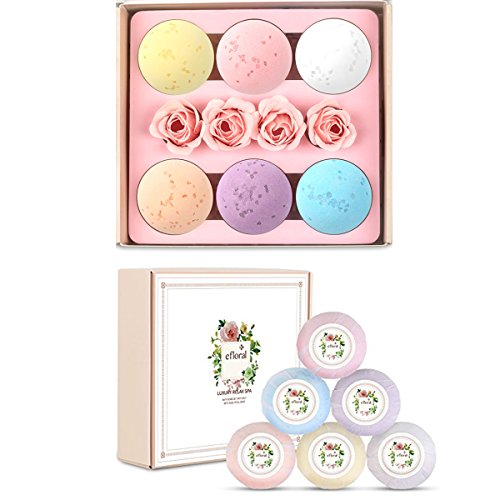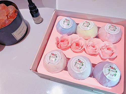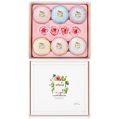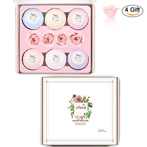 ?This Efloral Natural Bath Bombs Gift Set contains 6 Bath Bombs 4 Pink Rose Petal Soap,Each bath bomb is about 120G. ?Each lush bath bomb is nestled in tissue paper and dressed to impress charmingly presented in a delicate gift box, Rose petal soap brings romantic and luxury spa experience . Pamper yourself with Eforal bath bomb. Enjoy scented aromatherapy.