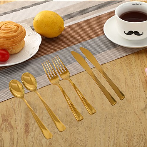 MADE FROM HIGH QUALITY GOLD PLASTIC WITH ENDLESS SHINE. Your guest will not see a difference between real gold china and these gold 24K look cutlery when served with these elegant spoons. Could be washed and reused.