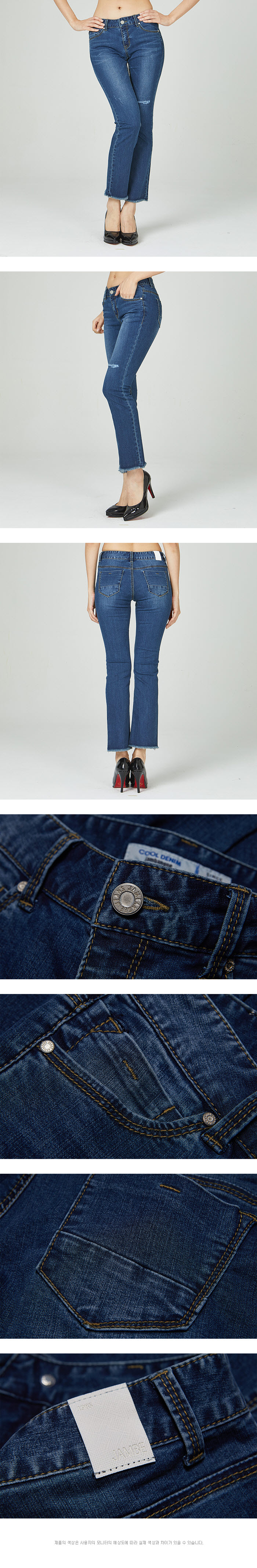 흡습성이 뛰어나 땀을 빨리 배출시켜 시원함을 느낄 수 있는 쿨맥스 소재로 바텍 포인트 MB톤 바이오스톤 칼구제 워싱의 여성용 슬림 NE핏 데님스타일.