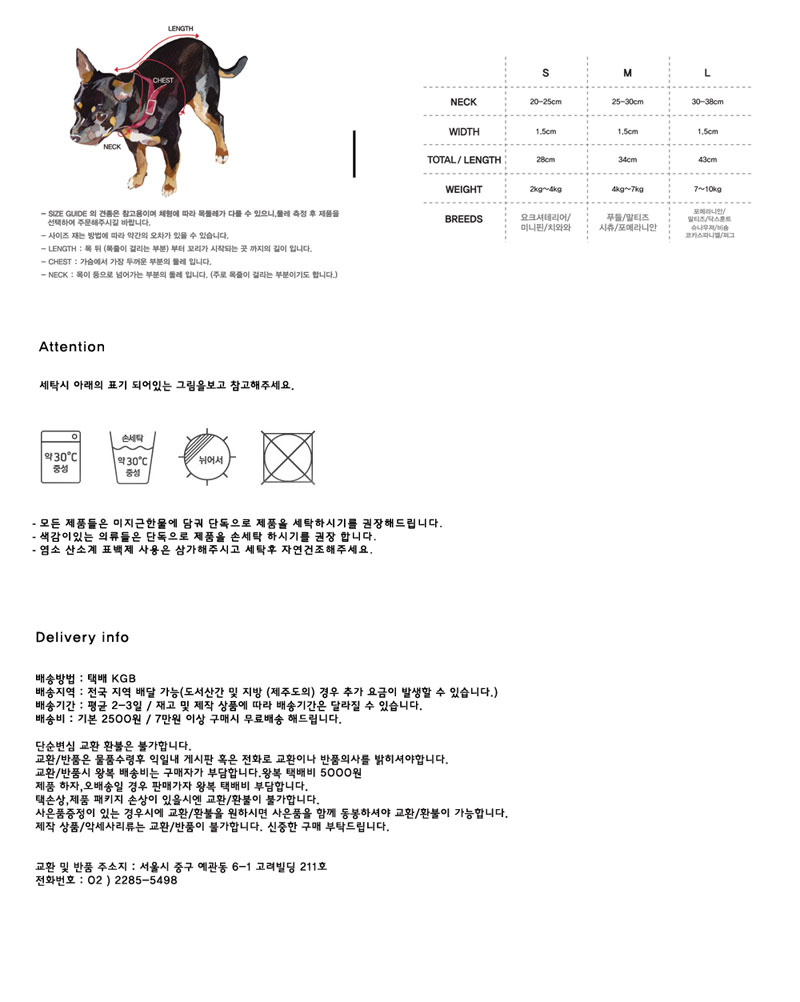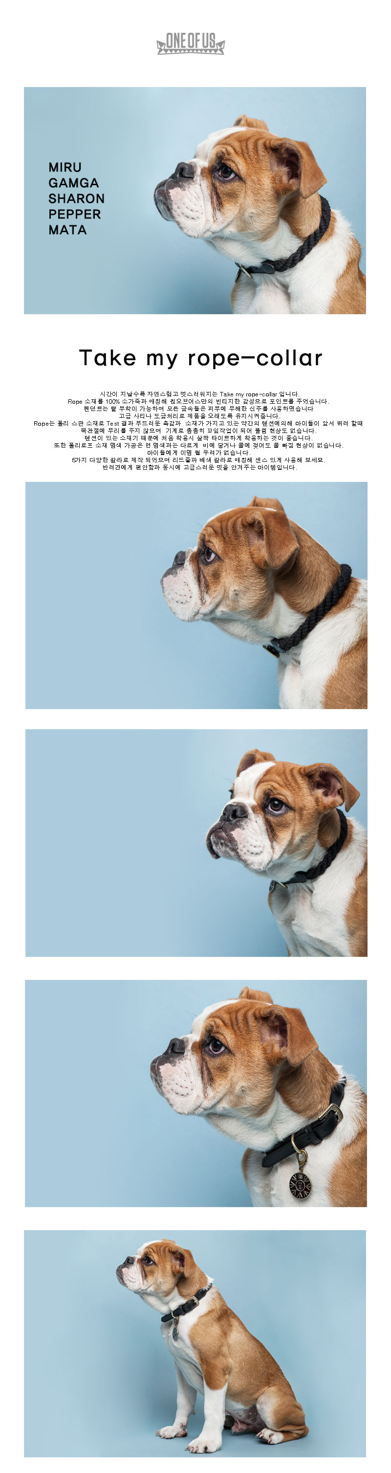| 시간이 지날수록 자연스럽고 멋스러워지는 Take my rope-collar 입니다. Rope 소재를 100% 소가죽과 매칭해 원오브어스만의 빈티지한 감성으로 포인트를 주었습니다. 펜던트는 탈 부착이 가능하며 모든 금속들은 피부에 무해한 신주를 사용하였습니다 고급 사티나 도금처리로 제품을 오래도록 유지시켜줍니다. Rope는 폴리 스판 소재로 Test결과 부드러운 촉감과 소재가 가지고 있는 약간의 텐션에의해 아이들이 앞서 뛰려 할때 목관절에 무리를 주지 않으며 기계로 촘촘히 꼬임작업이 되어 풀림 현상도 없습니다. 텐션이 있는 소재기 때문에 처음 착용시 살짝 타이트하게 착용하는 것이 좋습니다. 또한 폴리로프 소재 염색 가공은 면 염색과는 다르게 비에 닿거나 물에 젖어도 물 빠짐 현상이 없습니다. 아이들에게 이염 될 우려가 없습니다. 5가지 다양한 칼라로 제작 되었으며 리드줄과 배색 칼라로 매칭해 센스 있게 사용해 보세요. 반려견에게 편안함과 동시에 고급스러운 멋을 안겨주는 아이템입니다.. |