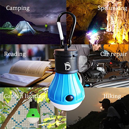 Includes 2 portable light bulbs in different body colors: green & blue.