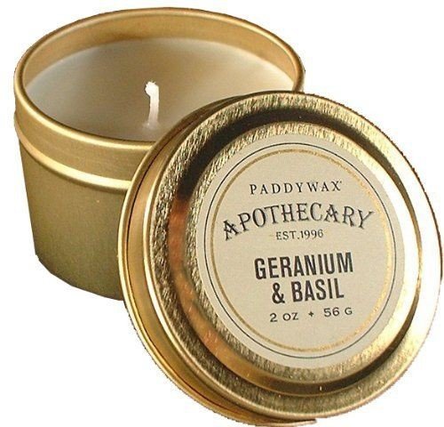 Product DescriptionPaddywax's signature Soy Wax, paired with Geranium Basil fragrance notes, hand-poured in a 2 oz. gold tin.0