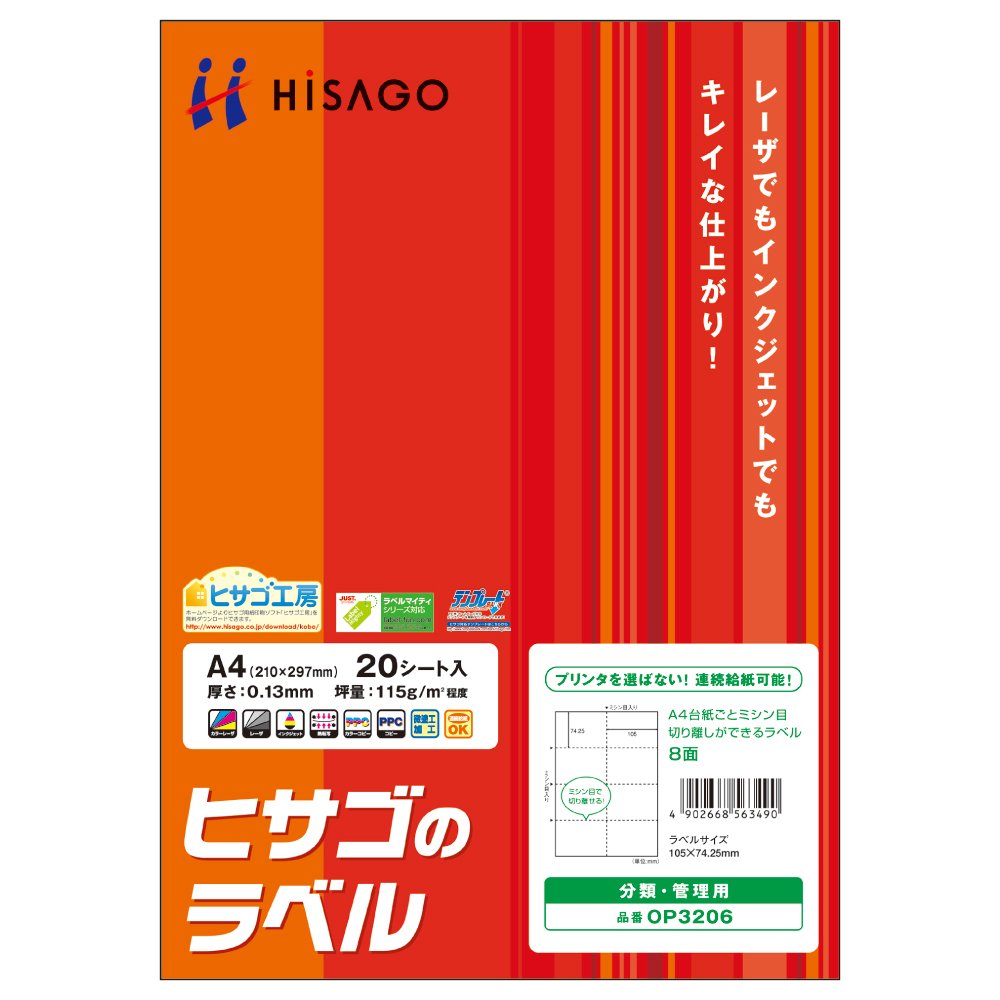8 side label of Hisagohisago A4 Perforated label (20 sheet containing) OP3206 (japan import)