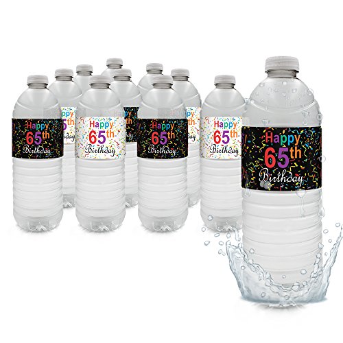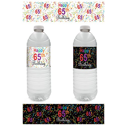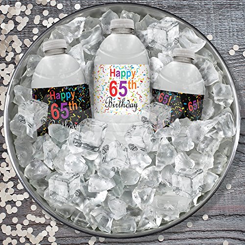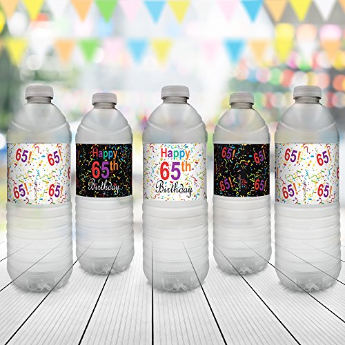65th Birthday Party Water Bottle Labels - Multi-Colored (20 Count)