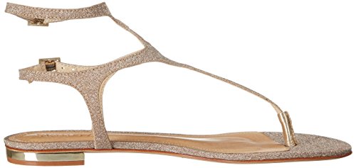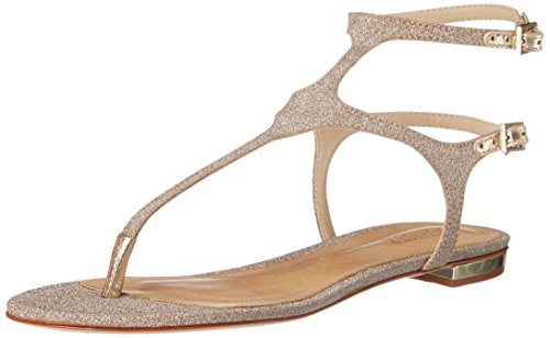 Glittery thong sandal featuring adjustable ankle strap and adjustable backstrap