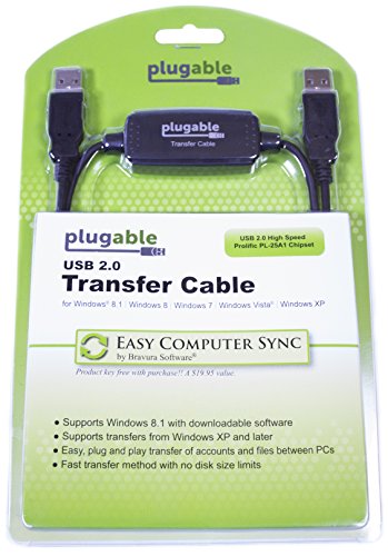 A license for Bravura Easy Computer Sync software ($19.95 value) will be sent to your email address when the cable is shipped. This software automates the transfer process of user data like documents, pictures, music, favorites and the like. Email and contacts can be transferred manually. Does not transfer programs; they must be reinstalled from the original disks or downloaded files.