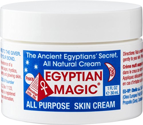 [Description] EGYPTIAN MAGIC ALL PURPOSE SKIN CREAM ``The People``s Choice`` is made with the blessings and guidance of our ancient Egyptian ancestors. It is a phenomenal healing balm with legendary powers due to its unique mixture of all natural ingredients derived only from living plants and organisms. Kamitian folklore tells us that this may in fact be the exact formula for a legendary skin cream found in ancient Egyptian tombs ONLY SIX INGREDIENTS (ALL NATURAL): Olive Oil_ Bees Wax_ Honey_ Bee Pollen_ Royal Jelly_ and Bee Propolis. With its unique formula and handmade attention during every step of the manufacturing process_ Egyptian Magic Skin Cream utilizes the natural preservatives found in our ingredients to provide an effective ``healing`` balm. Does not contain additives_ preservatives_ fragrances_ chemicals_ parabens_ GMO ingredients_ and is NOT tested on animals WHAT CAN I USE EGYPTIAN MAGIC CREAM FOR The real question is_ what CAN``T you use it for This powerhouse cream can pretty much do it all. Egyptian Magic is one jar that contains a face cream_ an eye cream_ a hair masque_ burn and wound relief_ cracked/dry skin relief_ lip balm_ baby cream_ shaving balm_ scars and stretch mark healing_ cellulite banisher_ and anything else you can think of NATURAL HEALING: Every day_ we hear from clients who have seen incredible results using Egyptian Magic on their eczema_ psoriasis_ acne_ and other minor to major skin ailments. Egyptian Magic is not a medicine and we make no medical claims for the product_ but we encourage you to read some of the many testimonials. We also offer a 100% money back guarantee so you can try Egyptian Magic risk free and see how it works for you BUY WITH CONFIDENCE: You can buy with confidence that you are getting the 100% genuine authentic product from our Egyptian Magic brand. This 1oz jar is the perfect size to take on-the-go or keep in your purse. We love it_ and we know you will love it too
