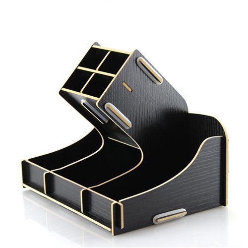 Stock Show 1Pcs Multifunctional Wooden Office Desk Organizer,Desktop Stationery Storage Box Collection, Business Card/Pen/Pencil/Mobile Phone/Remote Control Holder Desk Supplies Display(Black)