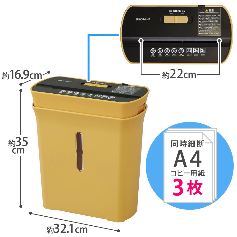 【定格細断枚数】:A4コピー用紙3枚