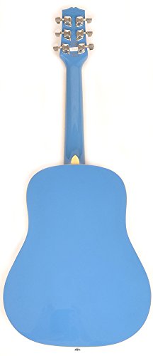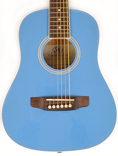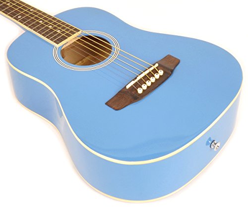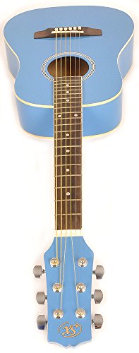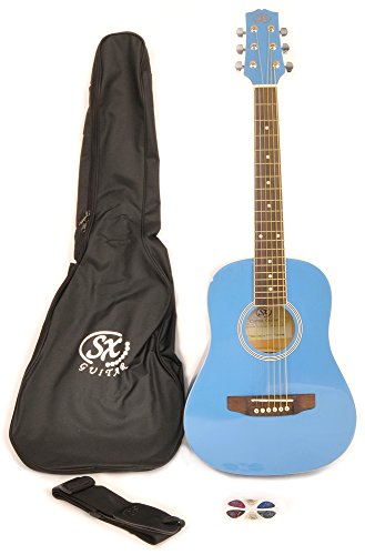 Studio : SX Publisher : SX Product Description Playful "Bubblegum Blue" finish ? Steel strings ? Chrome covered tuners ? Basswood body and rosewood fingerboard ? Graphtech compensated saddle for improved intonation ? Trus rod adjustable neck ? Ornate sound hole binding ? Left handed bridge and nut installed. Free carry bag, strap, and guitar picks included Measurements ? Overall length: 33" Body width: 11 3/4" Body length: 15" Body thickness at edge: 3 1/2" Scale length: 21" Width of the neck at the nut: 1 11/16" width of the neck at the 12 fret: 2" Thickness of the neck at the nut: 3/4" Weight: only 3.5 pounds 0
