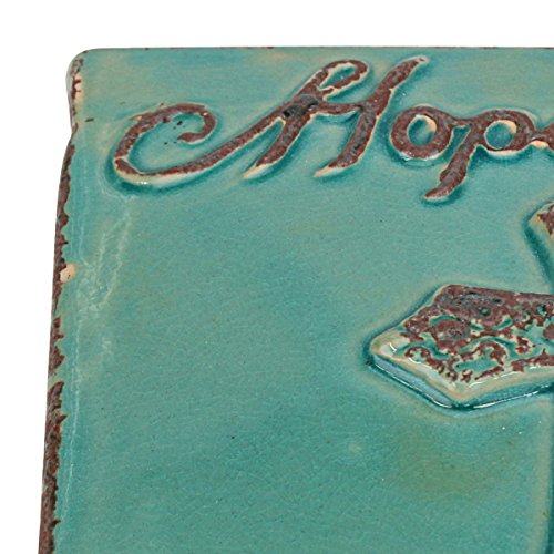 - This ceramic storage container features a raised cross and the word Hope on the removable lid with worn turquoise finish with to give a vintage feel