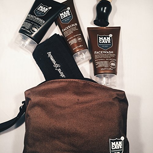 ManCave - The Wash Bag Kit, Men's Grooming Giftset - Face Scrub, Moisturiser and Face Wash