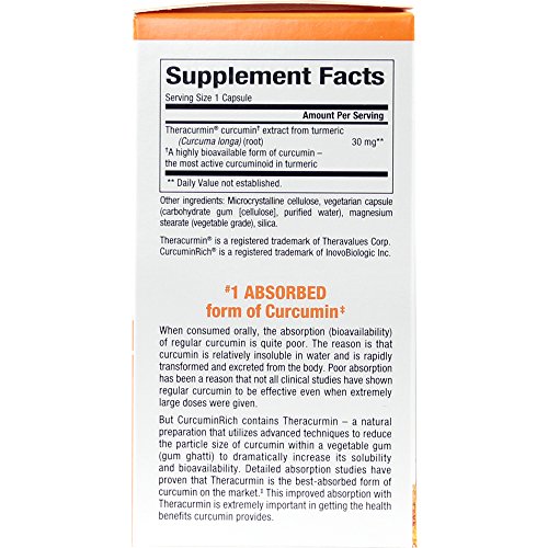 Product Description Curcumin is the yellow pigment of turmeric valued for its many health benefits. With curcumin, it's not how much you take, it's how much you absorb. CurcuminRich with Theracurmin provides superior absorption compared to regular curcumin. 0