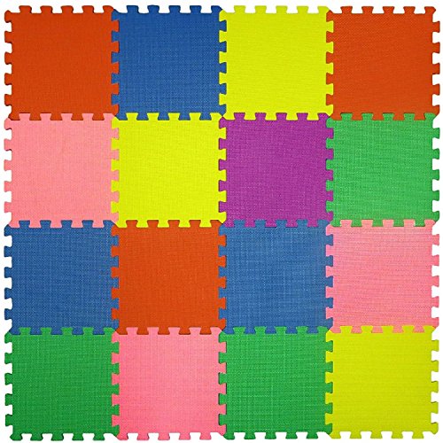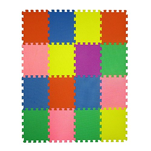 -. Feature : Mutiple Purpose, Including: Protection, Exercise, Play / Easy to Interlock, Stacks nicely and makes for a compact storage, 16 colorful EVA foam tiles, each tile measures 12" x 12" x 0.4" (315mm x 315mm x 10mm); covers an area of 16 SQ. FT, easy to clean / Tested free of BPA and lead. Suited for all ages, from young babies to adults / Includes mulitiple colors such as Green, Red, Blue, Yellow, Pink and Purple / This multiple-purpose multiple-color "Puzzle Tile Exercise Mat" is a must have for every home. Guaranteed to keep your child entertained endlessly, Protects your floor, Great as a comfortable mat for exercise