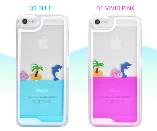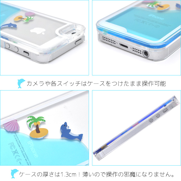 中に入っているモチーフが大きめの、iPhone5/iPhone5s/iPhone SE用のマリンカラーウォーターケース。