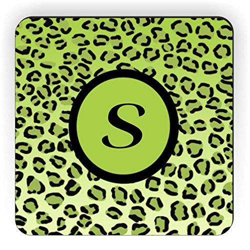 Rikki Knight Letter "S" Initial Lime Green Leopard Print Monogrammed Design Square Fridge Magnet