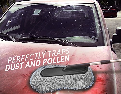 PERFECTLY TRAP DUST AND POLLEN --- The superfine microfibers collect dust from cars, trucks, and boats completely. It doesn't push dust around but actually lifts it off. A specially extended handle can reach difficult area like car roof and dashboard corners.