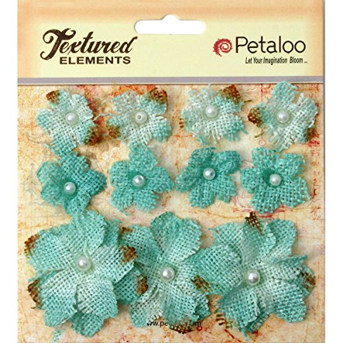 Petaloo Textured Elements Burlap Mini Flowers (11 Pack), .75" to 1.5", Teal