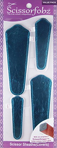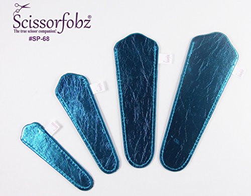 Scissors by SCISSORFOBZ with ScissorGripper -VALUE PACK-4 sizes- Designer Scissor sheaths Covers Holders for embroidery sewing quilting - Quilters sewers gift - Amazing Metallic Turquoise. #68