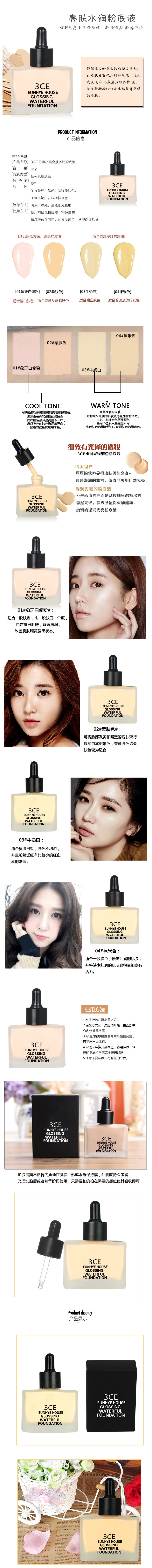 3CE Brightening Super moisturizing moisturizing dropper foundation liquid foundation cream concealer BB cream thin 40g