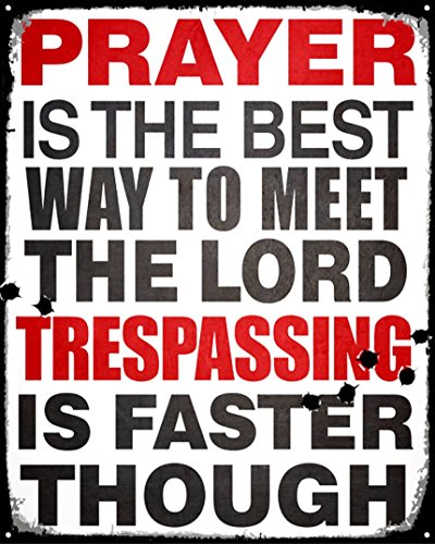 Prayer Best Way To Meet The Lord Trespassing Is Faster Distressed Look Tin Collectible Sign Gift